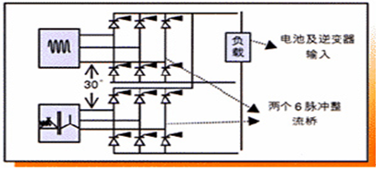12脈沖整流器示意圖(由2個6脈沖并聯組成)