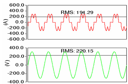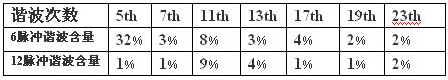 電流中含6K?1(k為正整數)次諧波,即5、7、11、13...等各次諧波,各次諧波的有效值與諧波次數成反比,且與基波有效值的比值為諧波次數的倒數。