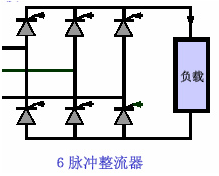 6脈沖指以6個可控硅(晶閘管)組成的全橋整流,由于有6個開關脈沖對6個可控硅分別控制,所以叫6脈沖整流。