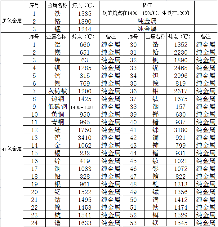 常用金屬材料熔點(diǎn)