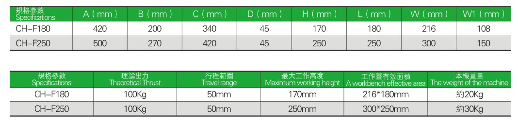 相關(guān)產(chǎn)品噸位:CH-F180型,250型適用于精密性電子、電流、連接器及五金件的壓鉚、打孔、整形、儀器測試等用途。