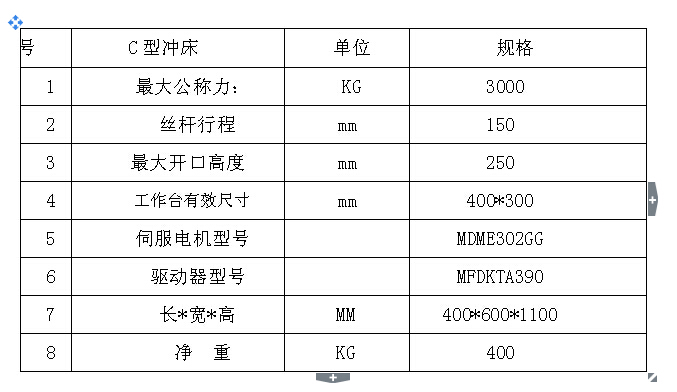 二:機(jī)器設(shè)備優(yōu)勢(shì)在于:1提高生產(chǎn)效率。行程長(zhǎng)度設(shè)定為生產(chǎn)必要的下限值。可維持與加工內(nèi)容相適合的成型速度。2制品精度高。通過(guò)閉環(huán)反饋控制,始終保證下死點(diǎn)的精度。抑制產(chǎn)品出毛邊,防止不良產(chǎn)品的產(chǎn)生。3噪聲低、模具壽命長(zhǎng)。通過(guò)低噪音模式(即降低滑塊與板料的接觸速度),與通過(guò)機(jī)械壓力機(jī)相比,大幅減少噪音。而摸具的振動(dòng)小,壽命長(zhǎng)。4滑塊運(yùn)動(dòng)的可控制性。使用者可利用此特點(diǎn)編制出適合于加工工藝的滑塊運(yùn)動(dòng)方式,有效提高產(chǎn)品的精度和穩(wěn)定性,提高摸具壽命及生產(chǎn)率,而且可實(shí)現(xiàn)靜音沖裁,甚至可以擴(kuò)大加工范圍(如鎂合金的沖壓加工等)。適于沖裁、拉深、壓印和彎曲等工藝,以及不同材料的特性曲線(xiàn)。如可將滑塊運(yùn)行停止保壓,其目的是提高制件的成型質(zhì)量。5節(jié)能環(huán)保。取消了傳統(tǒng)機(jī)械壓力機(jī)的飛輪、離合器等耗能元件,減少了驅(qū)動(dòng)件,簡(jiǎn)化了機(jī)械傳動(dòng)結(jié)構(gòu);潤(rùn)滑油量少,行程可控;由于電力消耗少,因此運(yùn)行成本也大幅度降低。